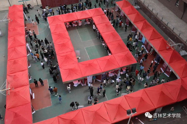 烈阳当空,吾心似火,良驹一跃,伯乐乘风。5月26日,吉林艺术学院2021届毕业生夏季校园供需见面会在造型校区体育场举行。
