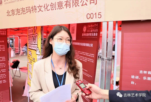 北京泡泡玛特文化创意有限公司经理王旭虹说:“从北京到长春,我们选择吉林艺术学院,一方面是学校已经向我们输送了许多艺术人才,这在我们公司树立了良好的口碑;另一方面,作为一家上市公司,我们了解到吉林艺术学院的专业设置符合我们人才招聘的内在需求,因此,我们来到了吉林艺术学院,希望吸纳更多优秀的毕业人才。”