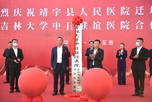 9月26日,吉林大学中日联谊医院与靖宇县人民医院紧密型医联体、互联网医院靖宇分院正式揭牌。揭牌仪式在靖宇县人民医院门诊楼东广场举行。医院派出耳鼻喉科陈明星、儿科陈锐、心内科王莹、肝胆外科李航、麻醉科高登宇等5位医生投入到靖宇县人民医院开展帮扶工作。