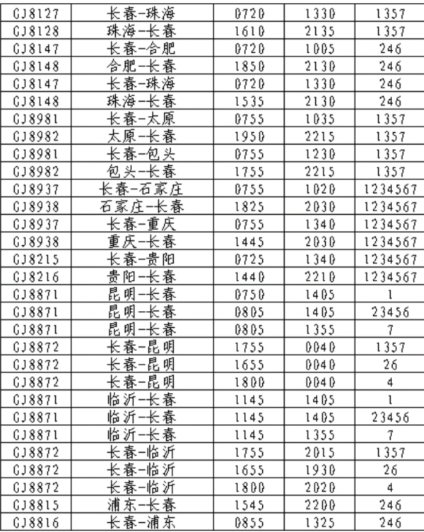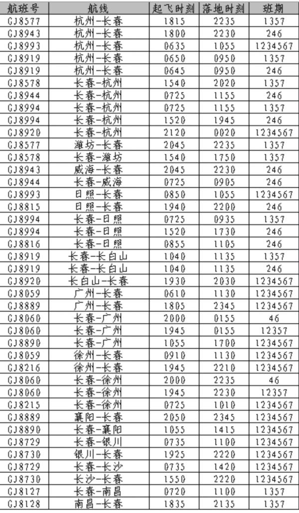 在新开航线方面,自10月31日起长龙航空将在长春新开长春=石家庄=重庆、长春=太原=包头、长春=徐州=贵阳等进出港航线。在新航季期间将推出大幅优惠,最低可达195元。