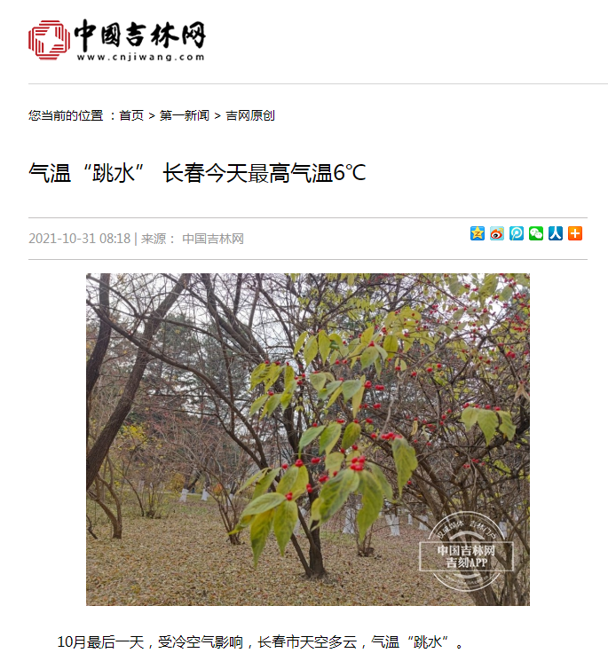TOP1:气温“跳水” 长春今天最高气温6℃