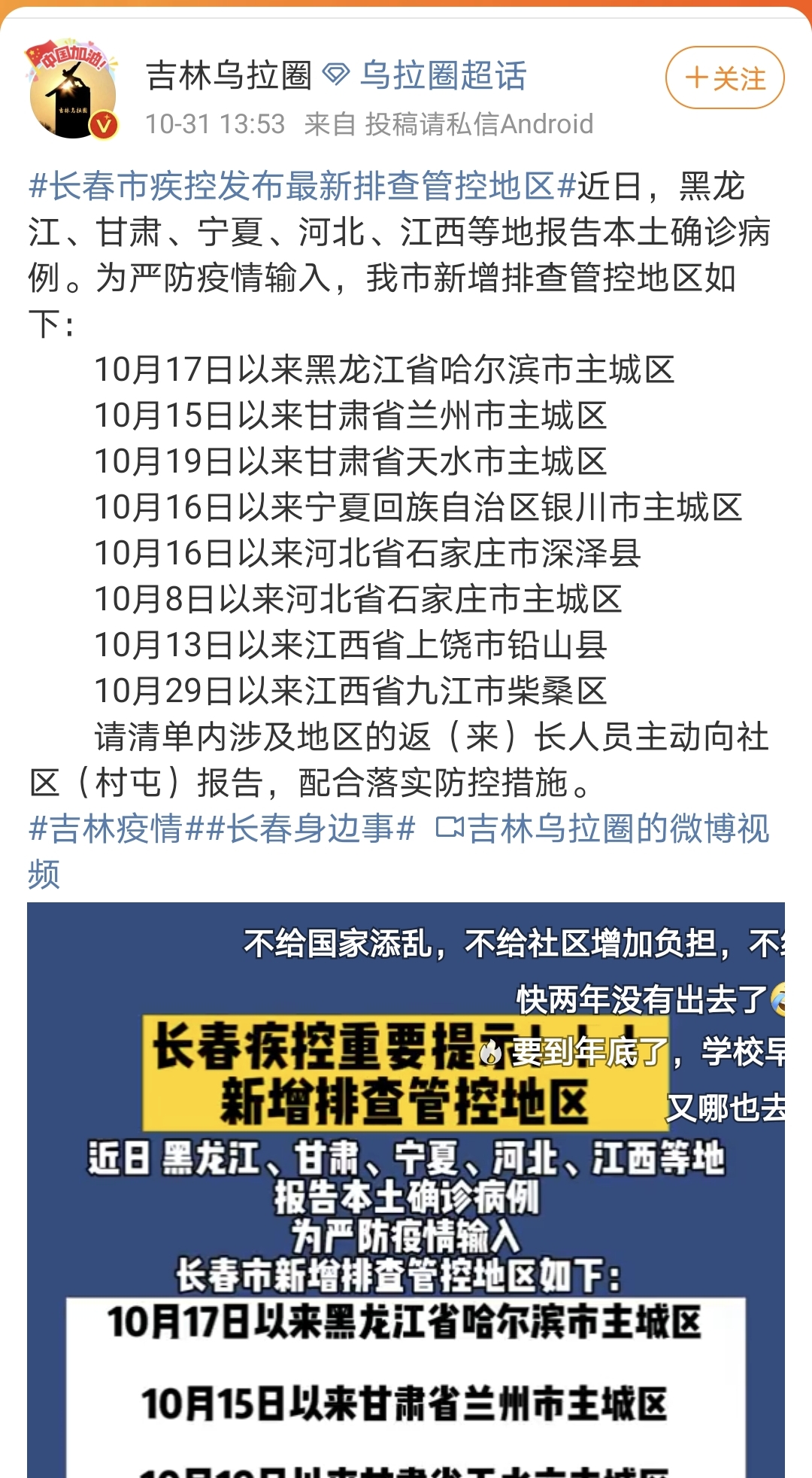 TOP2:长春市疾控发布最新排查管控地区