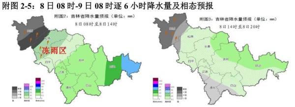 8日白天,松原东部、长春、四平、辽源、吉林西部雨雪相态转换复杂,将先后出现雪-雨夹雪-雨-雨夹雪-雪,白天以雨为主,傍晚以后逐渐转雪,部分时段将出现冻雨,由于地面气温相对较高,冻雨强度、范围、持续时间与2020年11月17-19日过程相比偏弱。