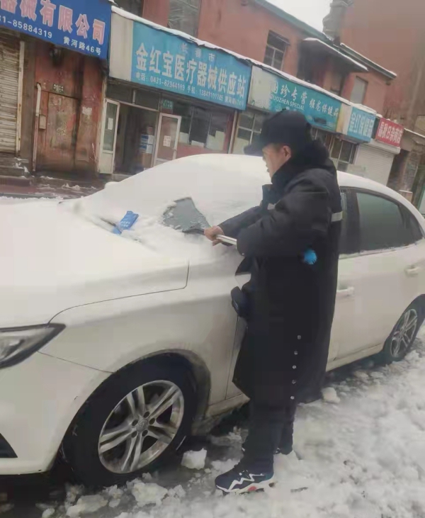 张先生是长春市红旗街路段的一名宣导员,他说:“这两天因为路面湿滑,不少人停车的时候都会犯难,所以这两天上班,不仅要完成自己份内的工作,还有一项清雪的任务。”