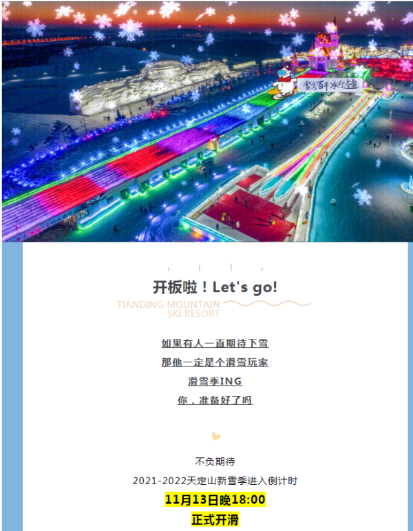 开板时间方面,该滑雪场正式开业暂定16号,为了让滑雪爱好者提前体验,暂定13号试滑;照往年相比提前十天。硬件方面,设备新增改造提升,营销上也有惠民政策。