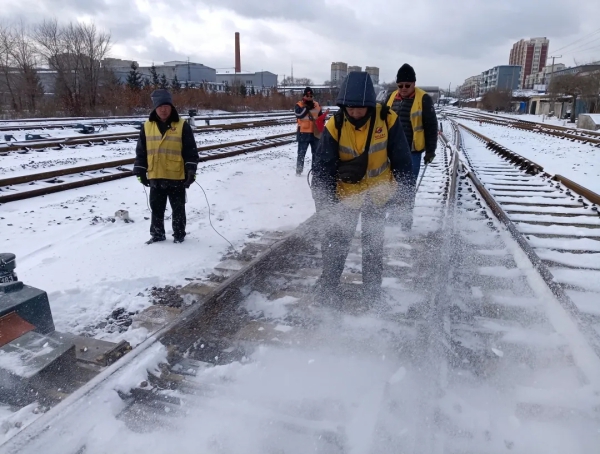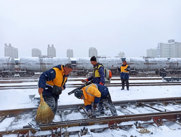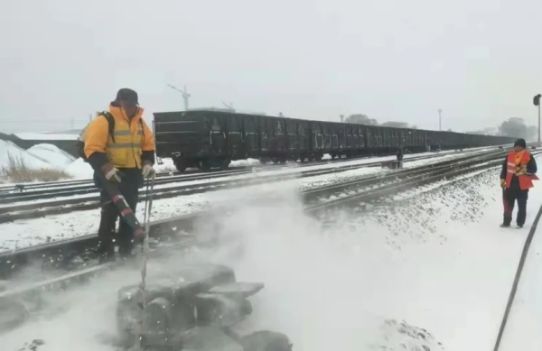 “离天窗结束还有30分钟,大家加把劲,一定要在‘天窗’点内完成道岔除雪任务……”11月10日上午10时,沈阳局集团公司通化工务段管内梅河口站内除雪现场,施工负责人、车间主任郭福军正手持对讲,向车间各除雪小组通报情况。