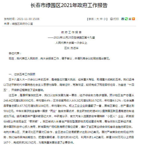 长春市绿园区2021年政府工作报告