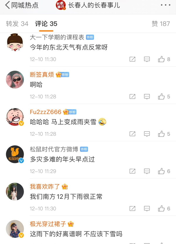 东北的冬天给人的印象总是“鹅毛大雪”“冰天雪地”,但在10日凌晨,长春居然下起了小雨。