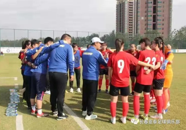 长春亚泰吉林农业大学女足主教练给队员布置战术