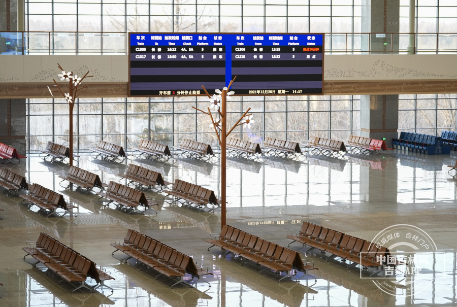 “站房的室内装修采用了大量的仿木纹设计,整体呈现暖色调,让乘客一进入大厅就能感受到温暖。”樊军说,目前,长白山站站房室内及站台装修工程已进入收尾阶段。