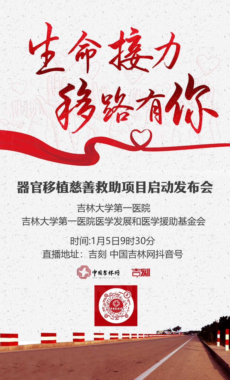 由吉林大学第一医院、吉林大学第一医院医学发展和医学援助基金会共同发起开展的“生命接力 移路有你”器官移植慈善救助项目启动发布会,将在吉林大学第一医院举行。