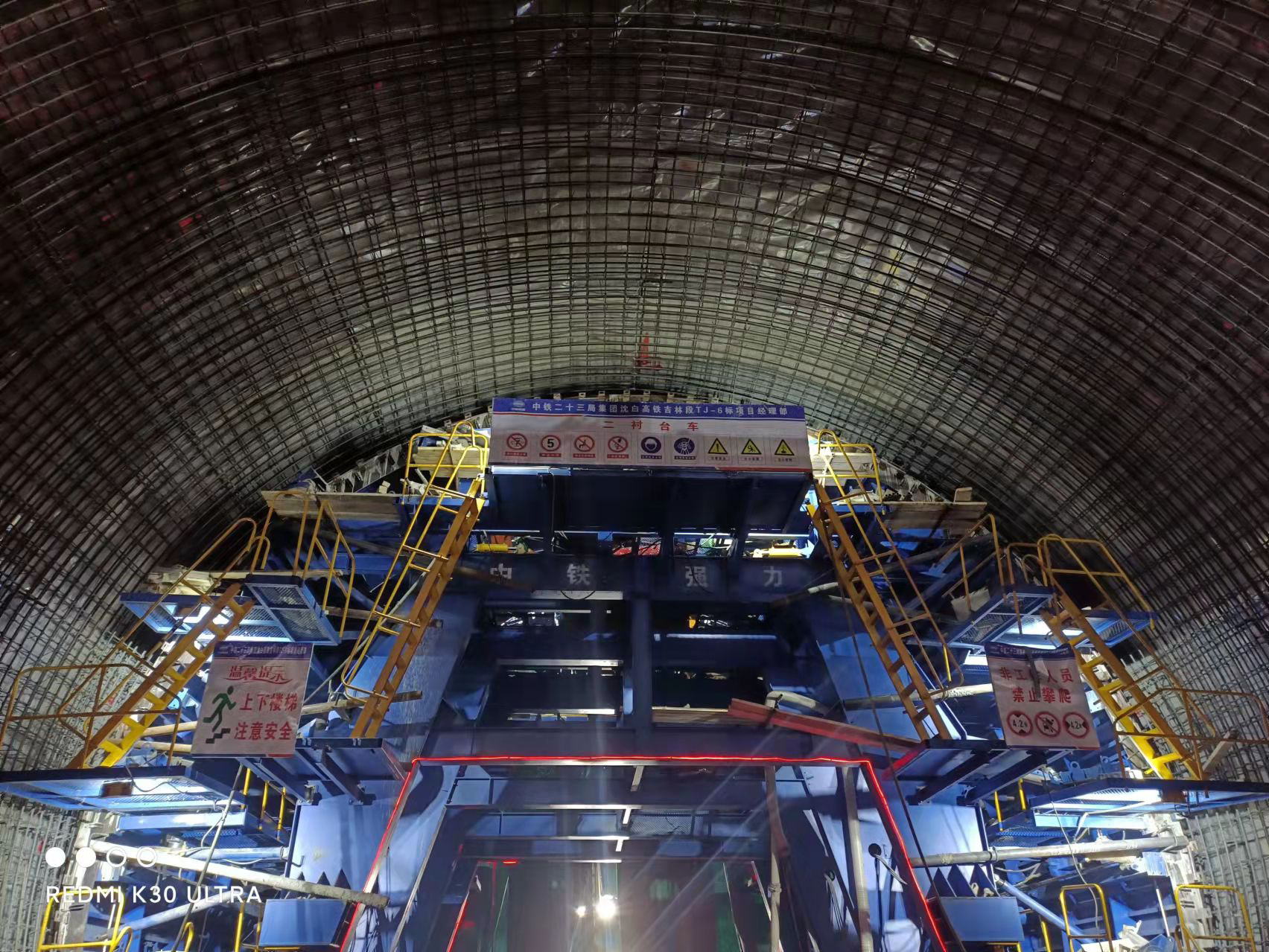 洞外冰天雪地,洞内温暖如春。参战全体职工三班倒作业24小时昼夜兼程抢进度,搅动了高铁施工火热之冬的持续升温。赤松隧道出口的 20余名工人正在进行混凝土灌筑作业,拱墙整体一次性灌注,浇筑、振捣及检查模板稳定性等,分工明确、各司其职,流程有序衔接,现场紧张忙碌。10台混凝土运输罐车往返出入,通过地泵输送至灌筑窗口,自下而上,水平分层对称浇筑,附着式振捣器和插入式振捣器振捣施工紧随其后。分部总工程师王维振对混凝土浇筑质量一点也不含糊,紧盯重点层厚不超过40厘米,相邻两层浇注时间不超过1.5小时,从而确保了上下层混凝土在初凝前结合好,不形成施工冷缝。同时垂直自由下落高度控制在2米以内,保证混凝土衬砌内实外美。