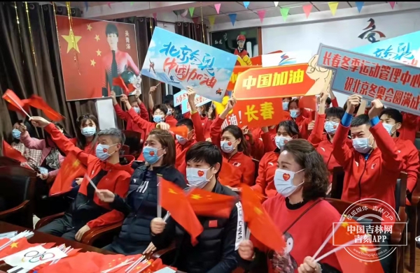 5日晚的长春市冬季运动管理中心会议室内,是一片欢乐的海洋。长春市体育局的领导,参加北京冬奥会的选手孙龙的父母,长春市冬季运动管理中心的工作人员、教练员和运动员们齐聚一堂,收看直播,为选手加油打气。