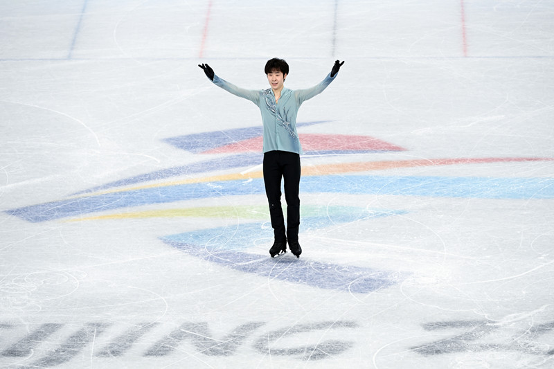 2月4日,中国队选手金博洋在北京2022年冬奥会花样滑冰团体赛男子单人滑短节目比赛中。新华社记者马宁摄