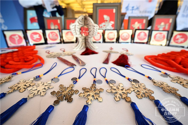 吉林省非物质文化遗产用鱼皮制作而成的冬奥主题画
