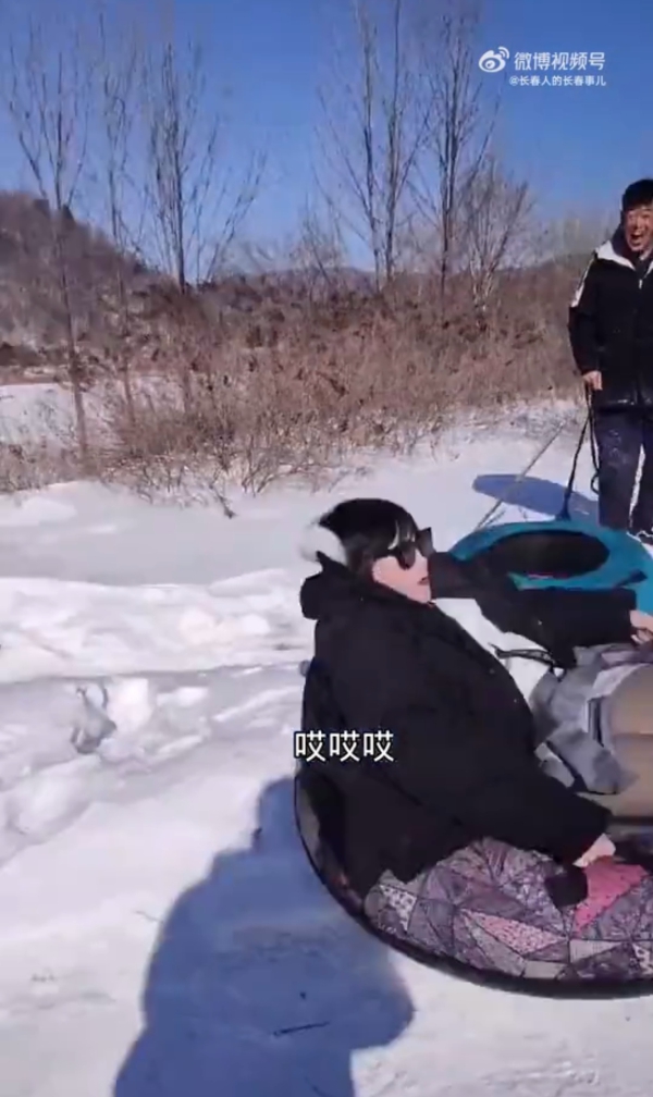 视频中,在一处山坡,几名成年人坐着雪圈从高处往下滑,大家甚至脱离了“赛道”,摔个人仰马翻,但现场却充满了欢乐。