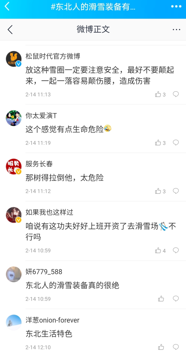 2月14日,微博博主@长春人的长春事儿 发布了#东北人的滑雪装备有多绝#话题。东北农村必须有个滑雪场,重温童年欢乐滑雪圈,东北人的滑雪装备都多绝……