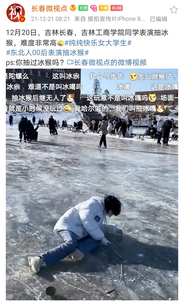 这些项目也引起观众,尤其是东北观众儿时的一些美好回忆。在简易的冰场、雪场,甚至至一些山路、坡路,都可以完美化身成冰场、雪场,那里是孩子们欢乐的海洋,运动的天堂。