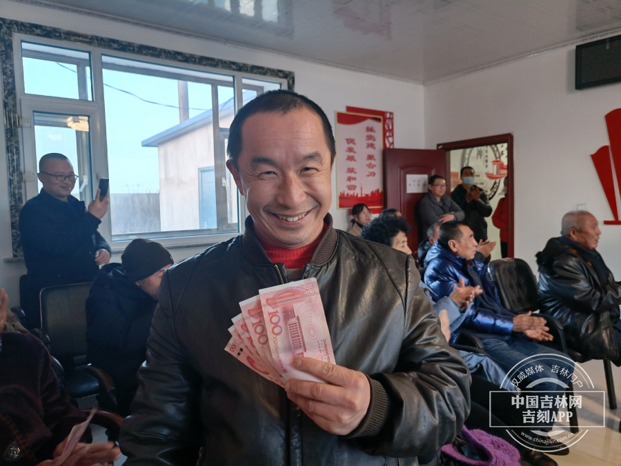 脱贫户李文昌开心地领到了分红钱