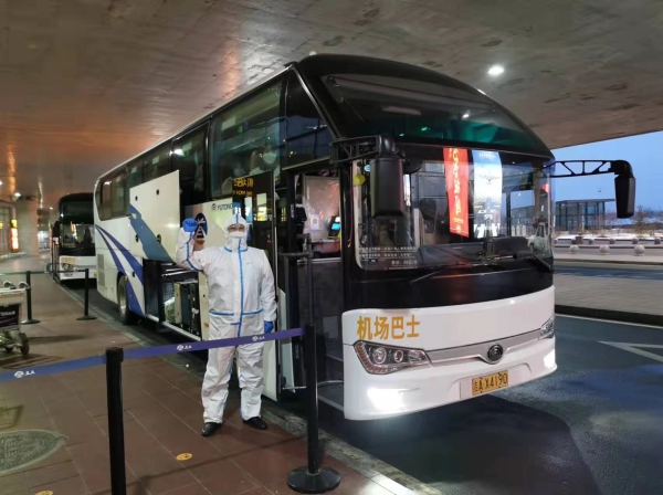 因疫情防控的需要,长春市多路段进行了交通管控,出租车等公共交通工具都已暂停运营,机场巴士成为紧急出行旅客的首选交通工具。