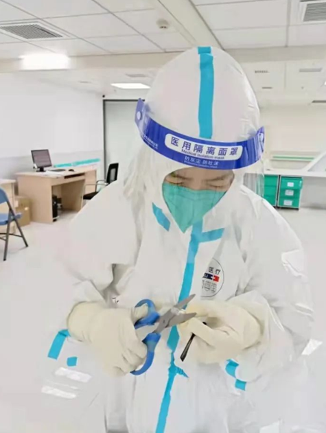 于是,和我一组的康复科护士贾冬梅立即投入到维修之中。因为在“红区疗区”很多维修的工具都没有,于是,我们俩拿热水烫氧气管,把眼镜腿接好,让孩子可以继续佩戴。