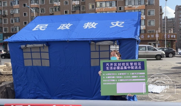 而小区物业则正在搭建临时帐篷,以后送到小区的商品就送进帐篷里,再由物业工作人员送到小区中,进一步减少接触的风险。