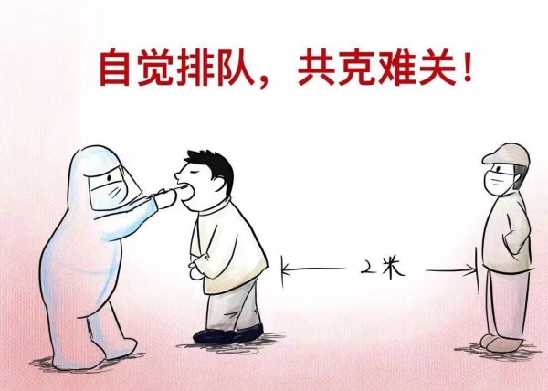 动漫学院 刘妍 漫画《自觉排队,共克难关》