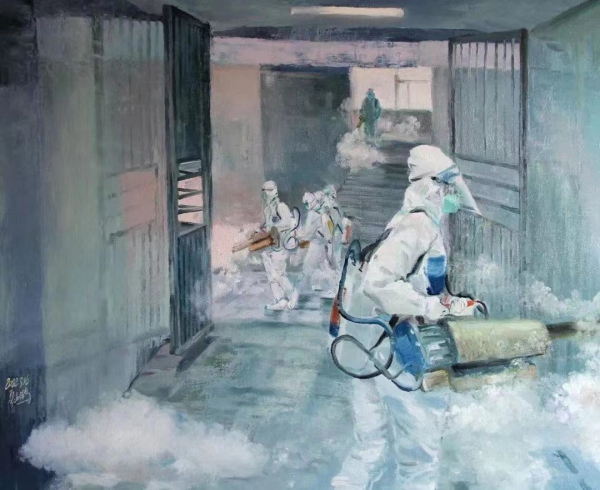 美术学院 夏远鹤 油画《抗疫逆行者》