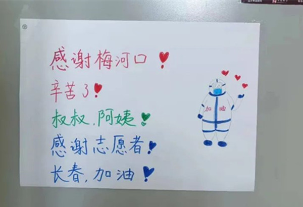 其实,经开各小区居民对梅河口驰援队的花式表白太多太多,门上贴着感谢标语、手工画,甚至还有小礼包。如果忽略疫情,相信大家会认为这是小区居民们举办的才艺展示擂台。