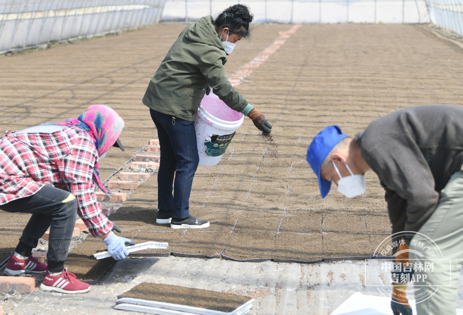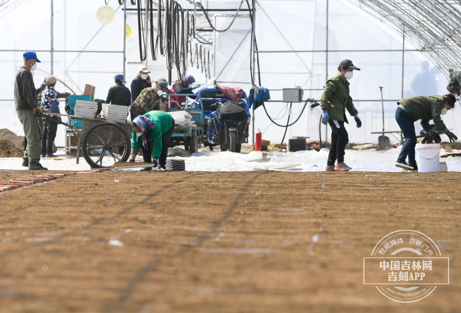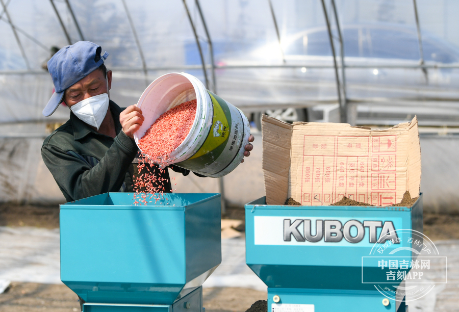采访当天,村内30余处育苗大棚内,村民利用农机正在加紧育苗,与过去不同的是,每一处育苗大棚门口都放置消杀用品,村民都戴着N95口罩,相互之间的配合没有往日的“紧密”,通过农机传送的方式,将插秧盘装上育苗,然后手动整齐地摆放在大棚内。“今年的水稻育苗受插秧盘的影响同比往年稍稍晚了三天,正常应该是本月5号就开始育种了,但是今年育种是7号正式开始。”吉林省合十农业科技发展有限公司种植经理安明星说,疫情对于育苗的影响微乎其微,各级政府多方协调,农资未受影响,整个育苗的农资已备齐,下一步就差肥料的运抵。