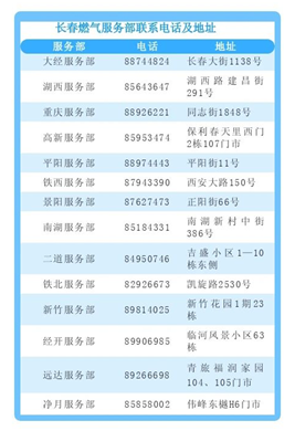 长春燃气24小时客服热线96660;也可拨打长春燃气各分公司服务部服务电话。