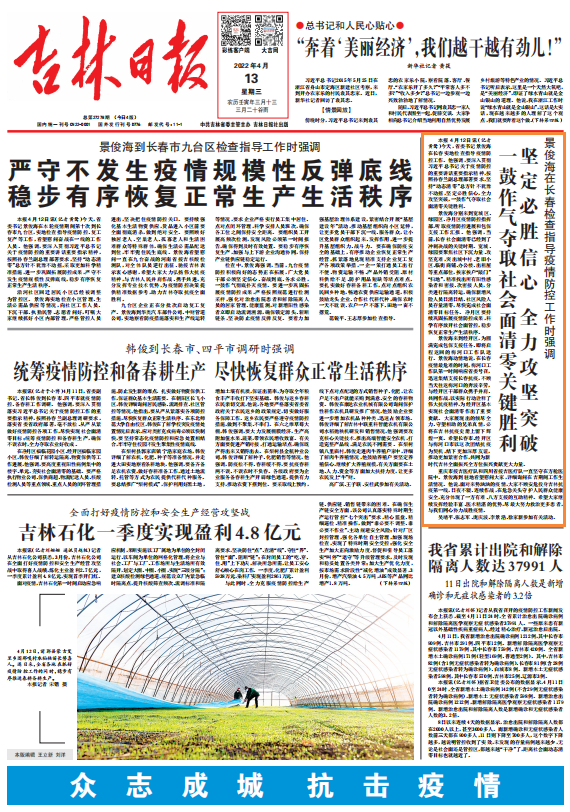 倾尽全力、守望相助的兄弟真情,必将在吉林抗疫史册上留下辉煌一页