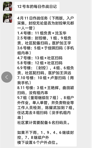 中国吉林网在采访中看到了驰援长春第12组的梅河口工作队的一篇“工作纪实”,里面内容非常丰富,包括任务分配、后勤保障。并记录了在驰援长春的前8个工作日里,先后有8名队员在防控一线申请入党。