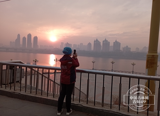 陕西省支援吉林市医疗队驻地前,5辆大巴车早已静候多时。松花江畔,一轮旭日冉冉升起,让此刻松花江的美景尽收眼底。