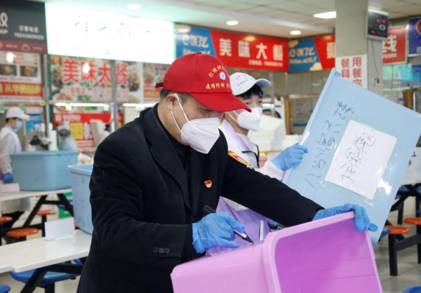 除了统筹谋划防控工作,他们还跟年轻人一样,手提肩扛送水送餐、运送物资,给予学生们父母般的照顾。食堂、宿舍、超市、仓库,到处都有他们忙碌的身影,汗水打湿了花白的头发,浸透了党员志愿者的“红马甲”,如果不是劳作以后略显迟滞的脚步和办公室的药瓶、热水袋,可能连他们自己都忘记了岁月留下的劳损、镌刻的年轮。疾风知劲草,烈火炼真金,老党员们用实际行动诠释岁月易老、初心如磐。