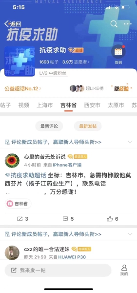 与此同时,网友“心里的苦无处所说”在微博“抗疫超话”发出求助信息:寻找扬子江药业生产的他莫西芬片。通过志愿者电话沟通,了解到韦女士长时间服用他莫西芬不能断药,疫情期间,她找遍各种方法都没能购到药,于是在“抗疫超话”中发出了求助信息。