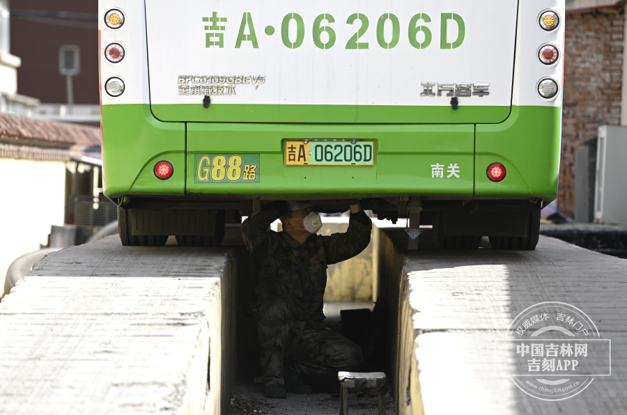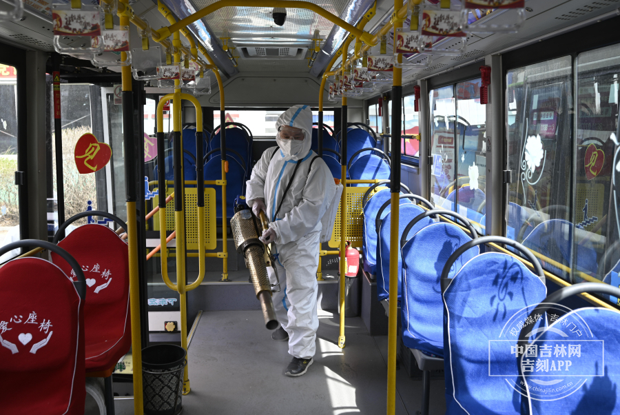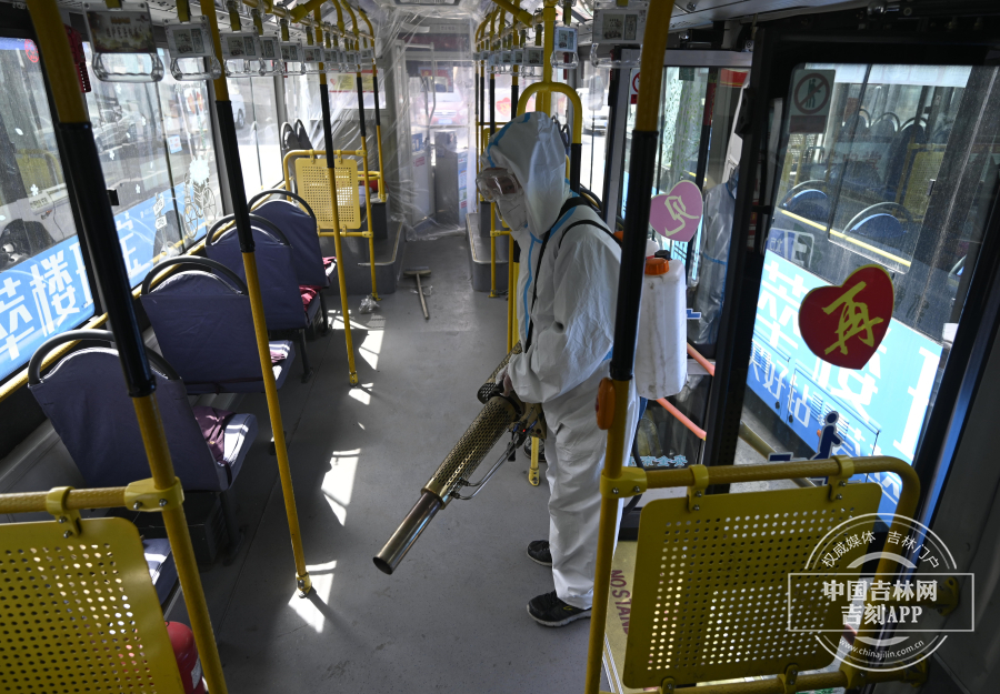 4月23日上午,中国吉林网记者走进长春市公交集团巴士公司行车三车队,20余辆公交车停靠在整备消杀区,工作人员身着防护服,手拿消杀工具,为车内外进行整体消杀。“场地、车库、车体我们用的这种喷雾机器,一天进行两次,车内主要用酒精或消毒剂进行范围喷洒。”现场进行消杀的工人李师傅告诉中国吉林网记者,消杀后,维修工人检查车辆,试跑一圈,确认安全后,将车辆停放在车库中。