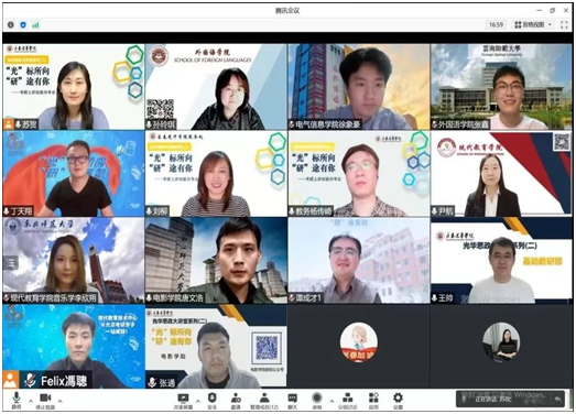 做客大讲堂的嘉宾有该校电影学院副院长张通、现代教育学院副院长尹航、外国语学院副院长孙玲琪、马克思主义学院院长助理谭成才、基础教研部主任助理王帅以及在2022届考研成功上岸的四位同学代表——徐象豪、张鑫、李欣朔、唐文浩。在两个小时的时间里,九位嘉宾与跻身腾讯会议的近1000位师生频频互动,呈现出一场别开生面的考研经验分享会。