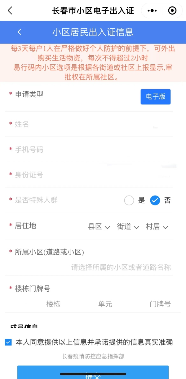 在小区居民出入证信息中按着流程填报,地址要具体到门牌号。