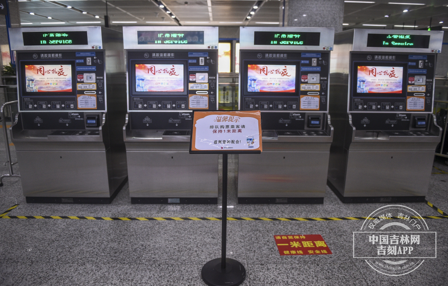 4日一大早,在1号线的卫星广场站,中国吉林网看到,乘客购票前需进行扫码、测温以及安检,同时需要全程佩戴N95口罩。进入购票区,自动售票机前温馨提示:“排队购票乘客请保持1米距离”。乘客们都在有序购票,因为车隔时间为半小时,等待的乘客比较多。大概20分钟后地铁进站,乘客们有秩序地登车。
