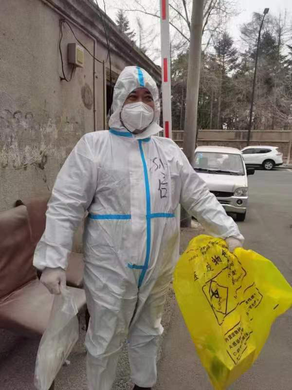 因疫情防控工作的转换,在远达社区连续奋战16天的孙启同志,回到自己所在社区,第二天又报名参加白菊社区抗疫工作,他主动邀请8名曾经一起在部队服役的老党员老战友,成立临时党支部,他主动担任临时党支部书记,组成志愿者服务队,为小区内居民“接单”“跑腿”,他在防疫志愿者群里喊出来了“我是党员,看我的”的口号。每天早晨,他召集大家部署任务,送物资、运垃圾、定菜包、发试剂、守门卫。既分工、又合作,各项工作有条不紊展开。临时党支部还建立了居民疫情防控群,制作了购买发放物资的小程序。针对小区老年人比较多的实际,他每天都要对所有住户开展敲门行动,及时了解大家的生活需求,进行防疫知识宣传,逐户进行消杀,极大地方便了群众居家防疫。
