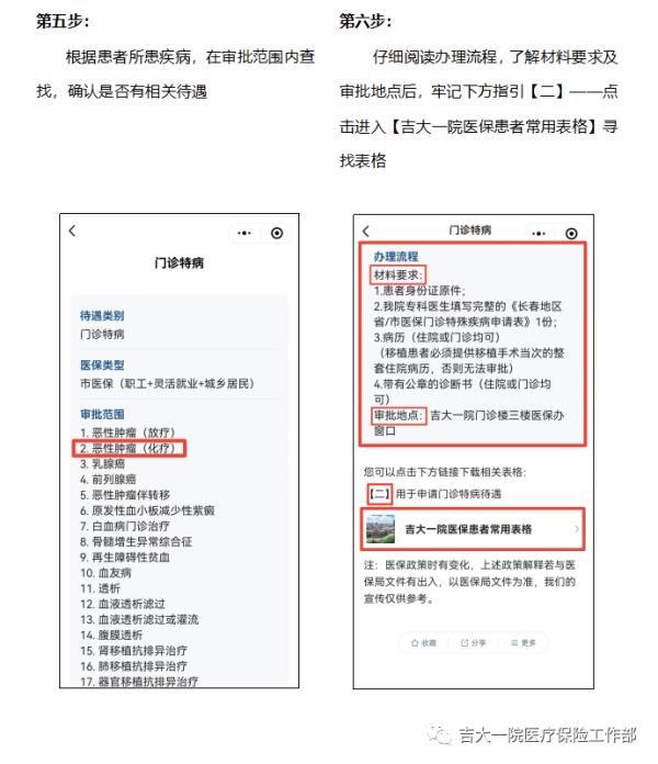 现向广大参保群众介绍该科室公众号中的【门诊慢特病】模块的【门诊特病】部分,以长春市职工医保患者,需要办理【恶性肿瘤(化疗)】待遇的办理流程为例: