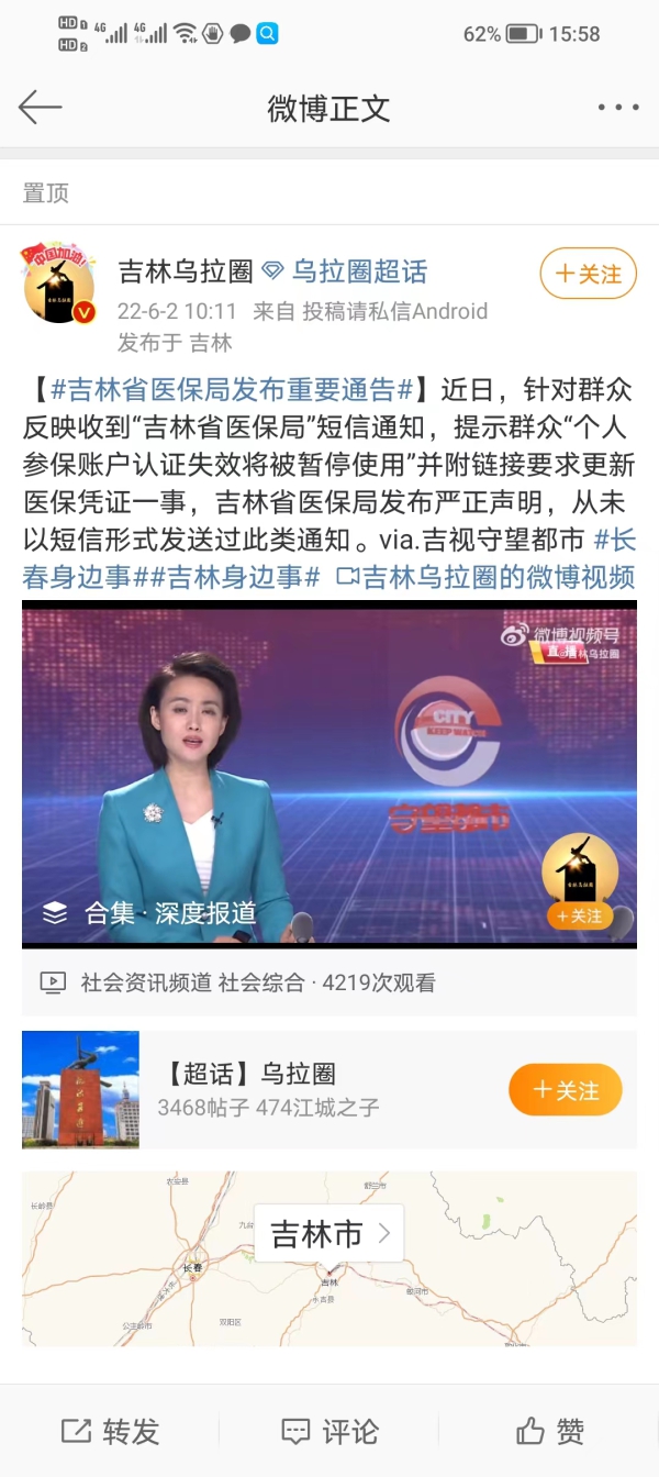 TOP1:千万别上当!吉林省医保局近期未发送过此类“短信通知”