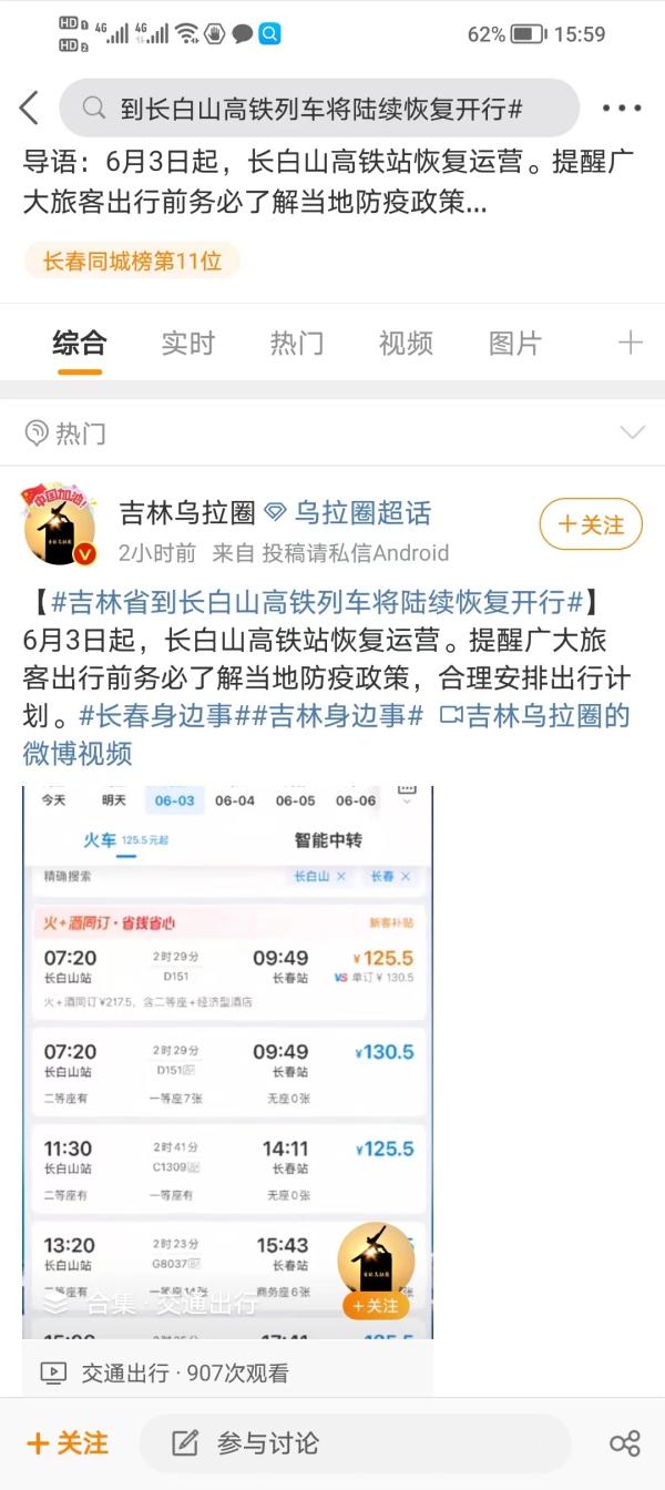 TOP2:吉林省到长白山高铁列车将陆续恢复开行