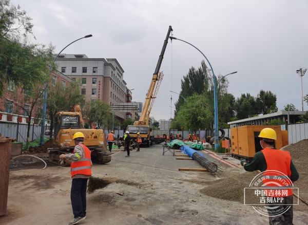 6月10日,在吉大一院人行过街通道施工现场,施工人员正在紧张忙碌地进行着管线派迁工作。