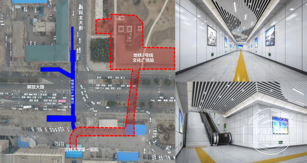 吉大一院人行过街通道, 位于解放大路与西民主大街交会,下穿解放大路主线长77.6m ,宽5.5m,设有3处出入口。工程于5月29日开工, 计划于12月20日完工。项目总投资共计约6485万元,工程投资约3891万元。