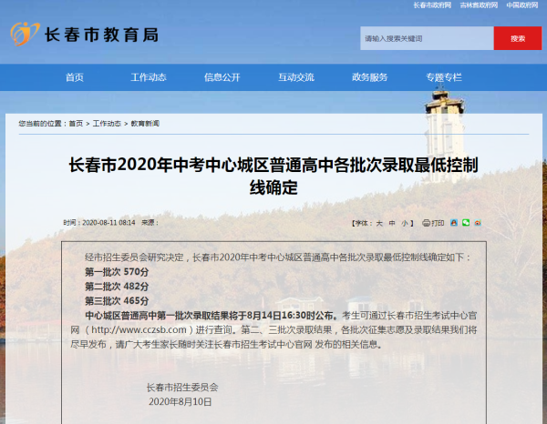 中国吉林网也梳理了近三年的长春市中考各批次录取最低控制线。