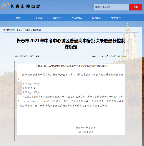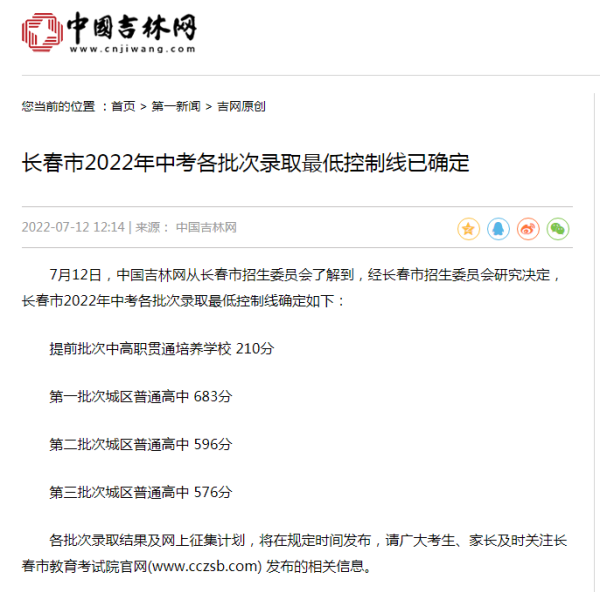 7月12日,长春市公布了2022年中考各批次录取最低控制线。中考成绩“放榜”后,今年其中的变化引起了很多网友的关注。