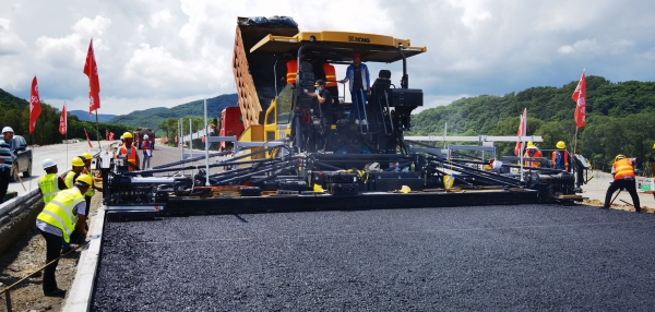 历经6小时的连续施工,最终顺利完成试验段摊铺任务。此次试验段的成功摊铺,为项目部后续沥青上面层大面积施工提供了重要技术参数和符合现场施工的工艺控制流程,为进一步加快工程建设进度,掀起路面施工新一轮大干热潮,确保完成年度施工任务奠定了坚实的基础。