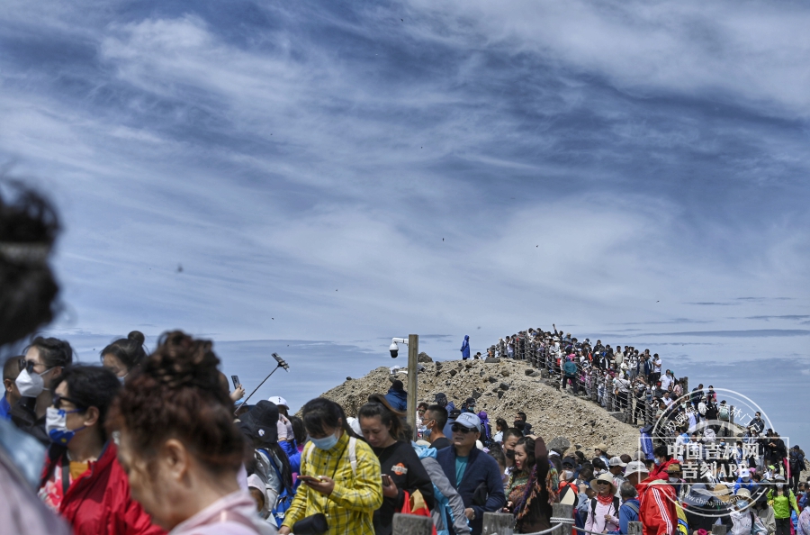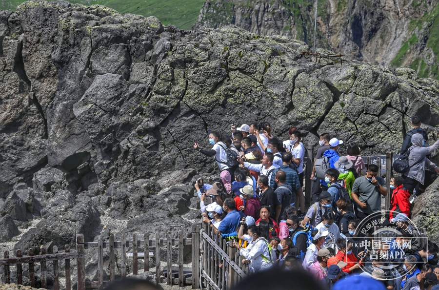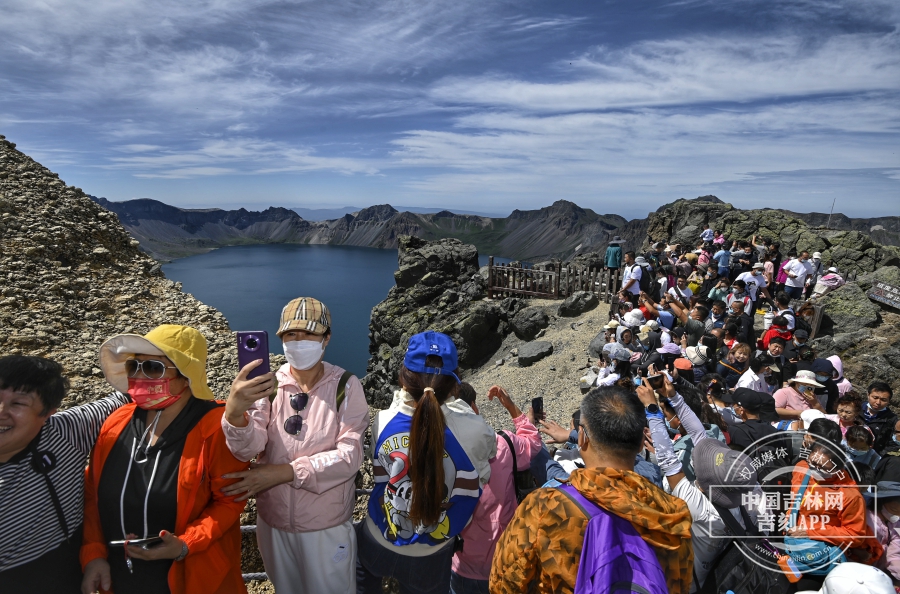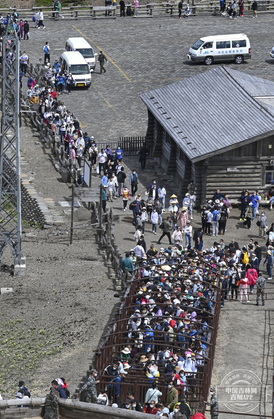 主峰天池服务区,游客有序参观着绝美的天池景色